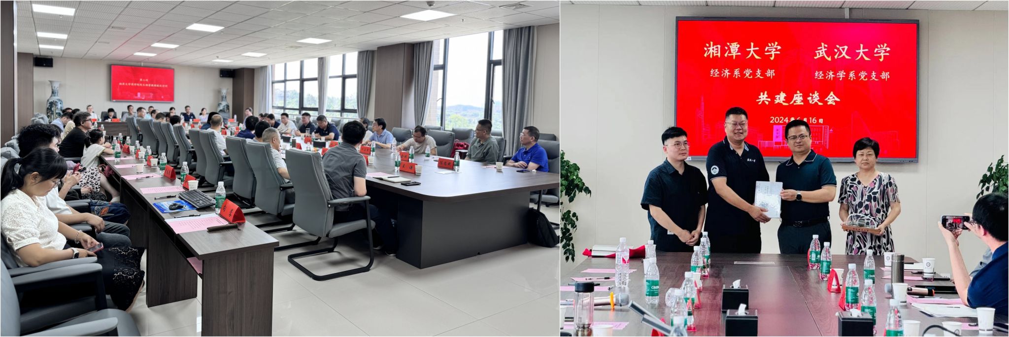 第三站是与湘潭大学商学院经济学系教师党支部的共建活动。双方围绕如何在新时代背景下,更好地传承和发扬党的优良传统,如何加强支部建设、以党建促进学科发展和人才培养等方面进行了深入交流。