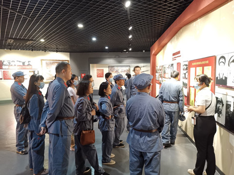 随后,全体党员一起瞻仰了新四军第五师历史陈列馆,以及司政大礼堂、枪械所、医务室、参谋处、后勤部、印刷厂等红色记忆的旧址,共同寻访革命遗迹,重温革命历史,感受红色情怀,接受革命传统教育和爱国主义教育。在陈列馆,讲解员为大家讲述一幅幅革命战斗资料、一张张历史图片背后的故事,大家认真聆听,仿佛置身于烽烟滚滚的战争年代,感受革命先辈们开创新时代的艰难和勇气,再次被新五师艰苦卓绝的辉煌历程所震撼。