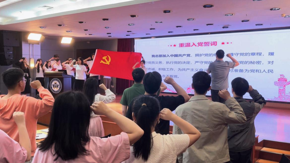 党委副书记杨志威为9月、10月和11月入党的党员和预备党员发放“政治生日贺卡”,教师第二党支部书记胡艺带领全体党员同志面对鲜红的党旗重温入党誓词,激励党员同志们不忘初心,牢记使命,砥砺前行。