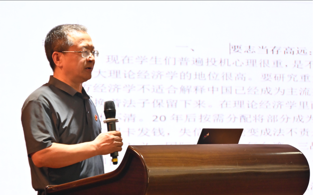 经济学系王今朝教授以“勇攀科研高峰”为主题作科研经验分享。王今朝老师指出,中国现在面临很多重大现实问题值得大家关注,大家平时要多读、多思、多问,必须深刻理解“研究就是理论与现实的‘联结’,要以问题为导向,以正确的世界观和方法论看待问题、解决问题,才能写出有价值的论文。