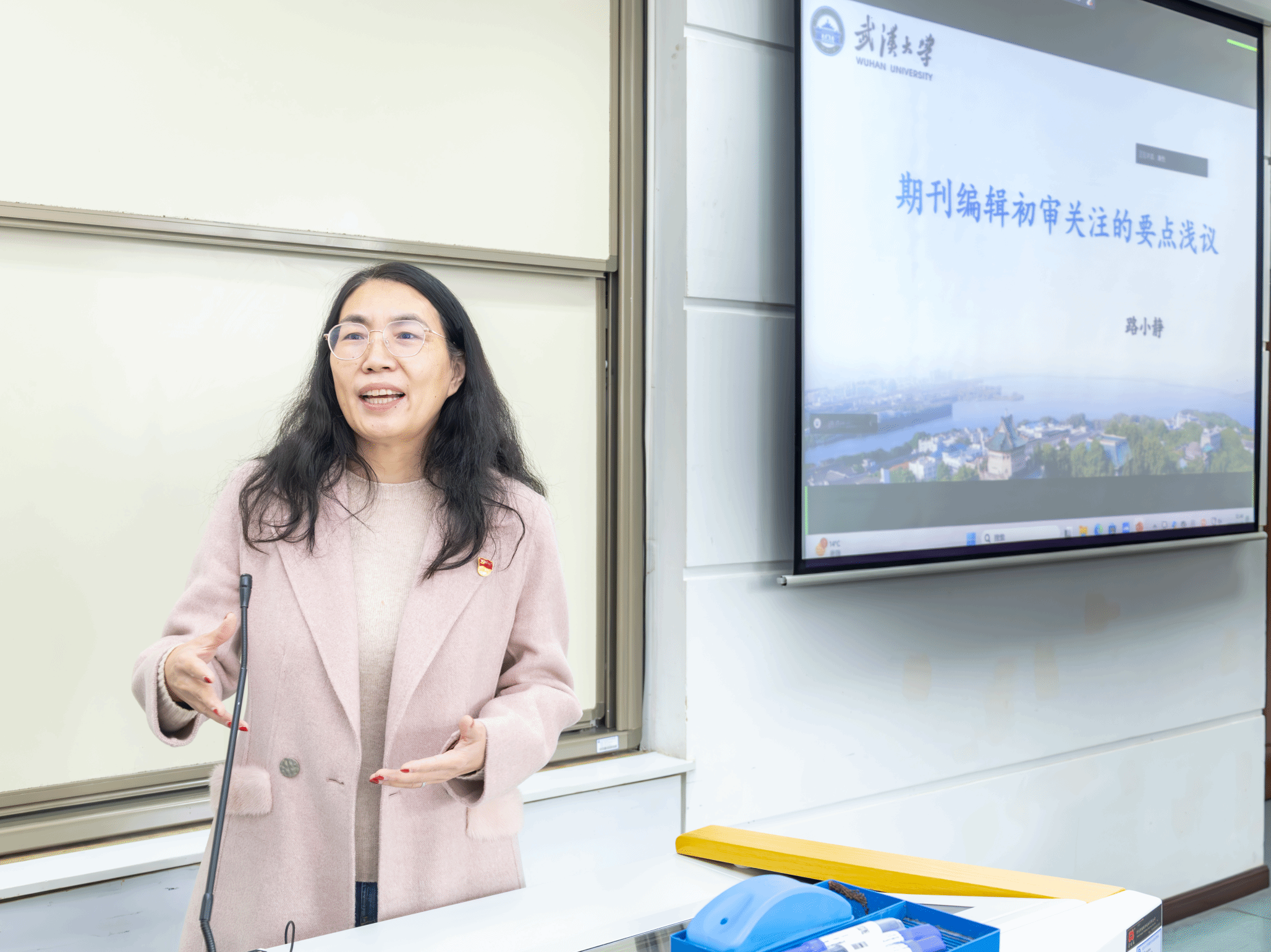 编辑指点,做别具慧眼的科研人。《珞珈管理评论》编辑路小静老师结合自身丰富的编辑经验,详细解析了期刊编辑在初审过程中所重点关注的内容。她围绕具体审稿流程,深入讲解了论文标题、摘要、引言、正文以及参考文献等环节的初审重点,为同学们释疑“如何打造一篇打动审稿人的优质论文”。路小静老师还勉励在场师生专注科研,坚守学术初心,不断提升论文质量,努力将研究成果与社会实践相结合,为理论创新与实践发展做出积极贡献。