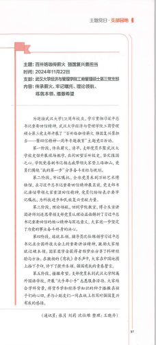 工商管理硕士第三党支部的组织生活案例“百卅珞珈传薪火,强国复兴勇担当”成功入选湖北省委组织部主办的《党员生活》杂志2025年2月上期(总第742期)。