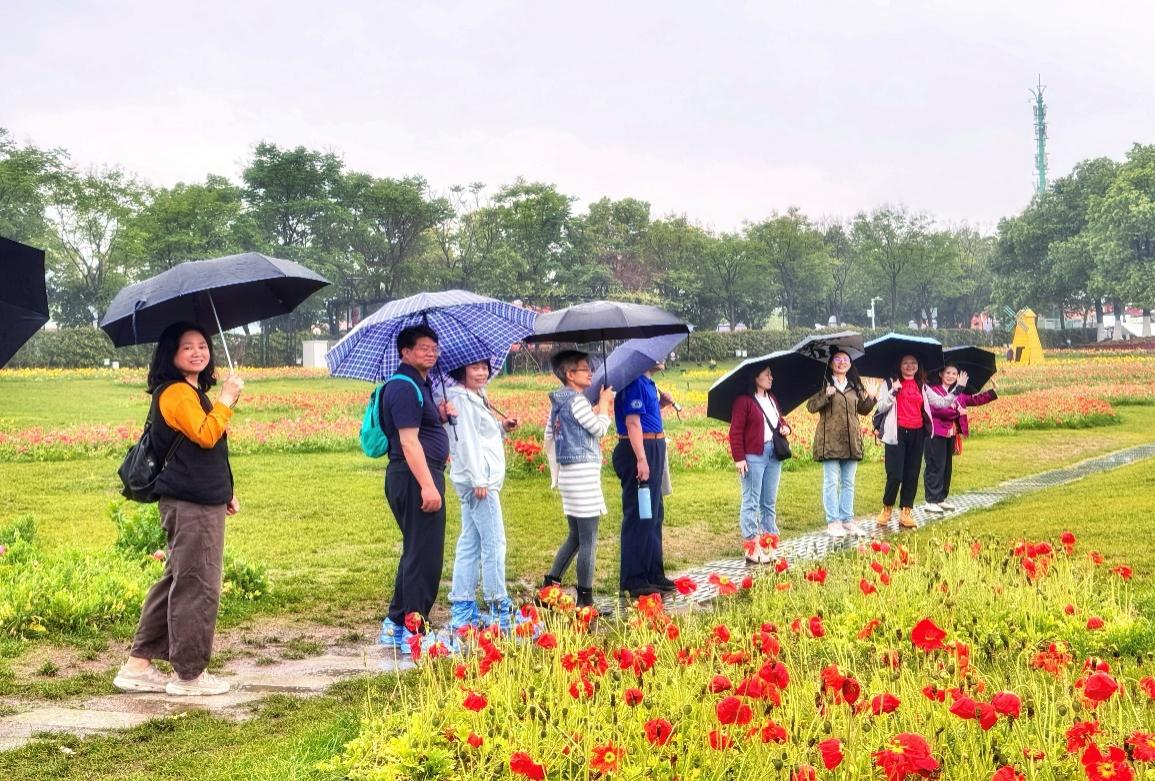 下午,党员群众来到位于知音湖大道的花博会短暂放松身心,在滂沱春雨中参观四季花海、弗洛伊鲜花小镇等特色景点,感受别样的花慢人生。在问茶村非遗体验区停留之际,他们观赏到古戏台的《市井百艺》《不折风骨》和知音剧场的《绝弦记》,领略传统匠艺的精妙和知音文化的隽永,体验了精彩纷呈的民族传统文化焕发出时代光彩。置身复合型业态的文旅小镇,欣赏五彩斑斓的花海,党员群众对科技农业、绿色生态发展有了崭新的认识。