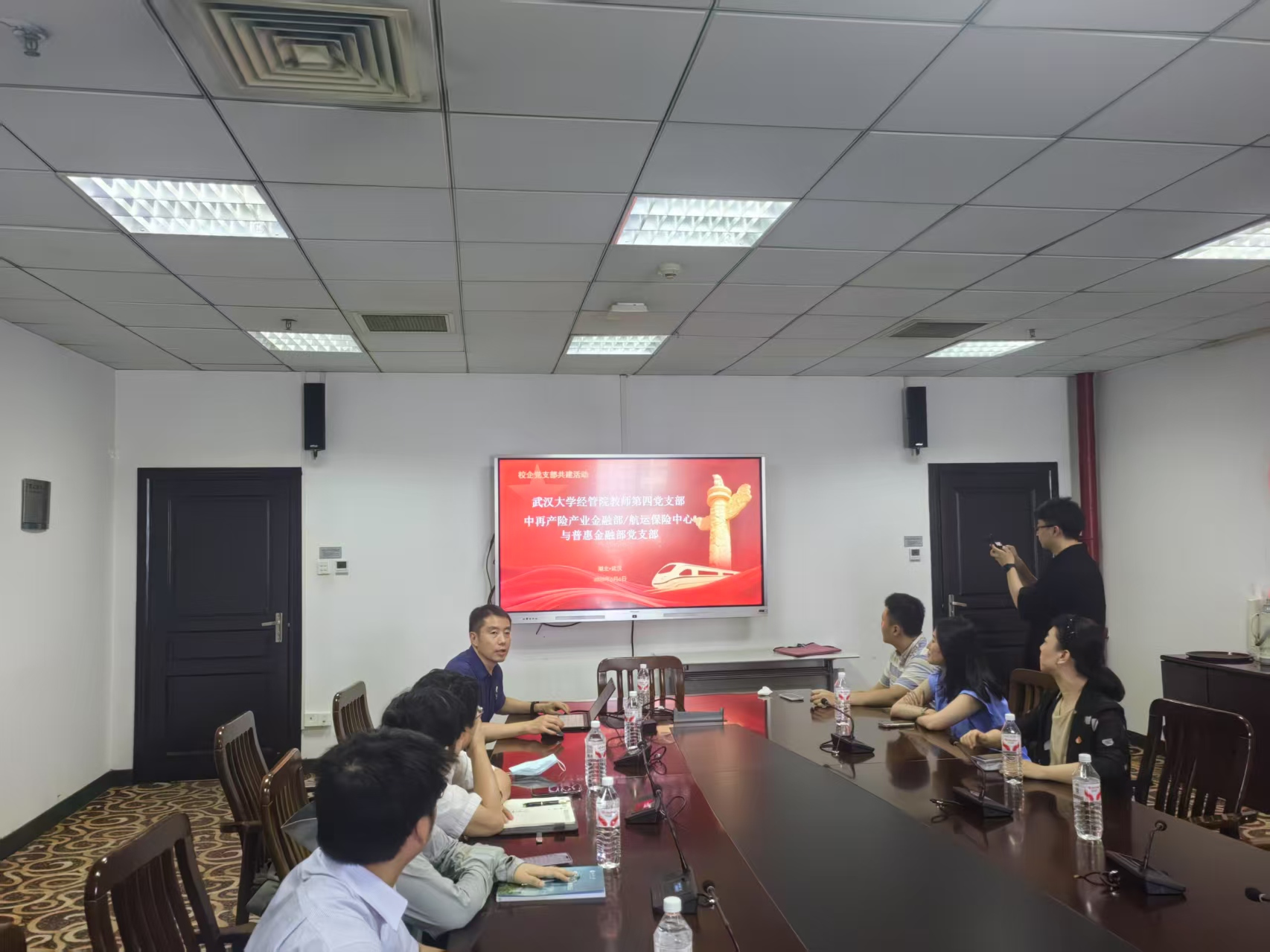 为深入学习贯彻习近平总书记关于党的建设的重要思想,推动校企合作与协同育人,学院教师第四党支部与中国财产再保险股份有限公司(以下简称“中再产险”)产业金融部与普惠金融部党支部于2025年6月6日下午联合举办主题共建活动。中再产险党支部成员、学院第四党支部全体党员以及辣文
