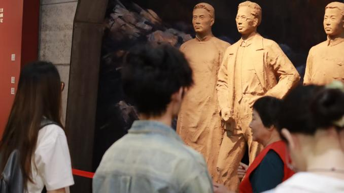 进入中国共产党创立和大革命时期,从党早期组织的萌芽到工农运动的蓬勃开展,浙江嘉兴南湖红船、萧山衙前农民运动等都是革命火种在这片土地点燃、燎原的见证。同学们凝视这些珍贵的文物,深刻体会革命先辈的信仰与不易。