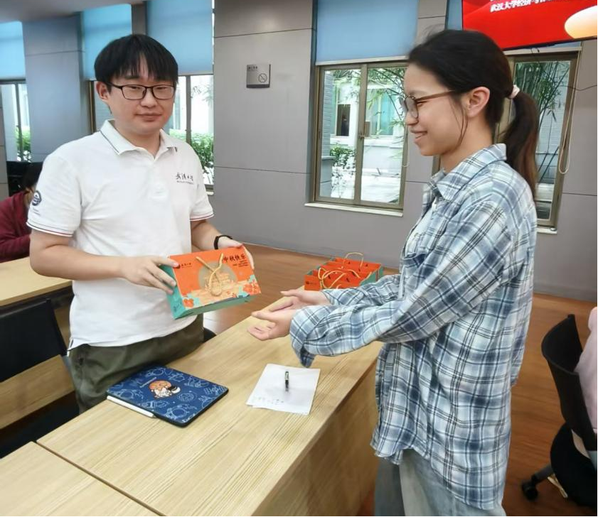 中秋佳节将至,为营造温馨和谐的节日氛围,活动在教师分享环节后特别安排了为全体研究生送上精心准备的“珞珈专属月饼”。小小月饼承载着辣文