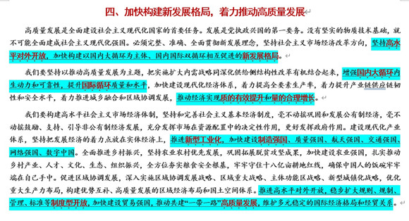 新发展格局下我们应该怎样国际化?这里我把二十大报告的第四部分全文原貌放映出来,该部分也是和我们经济、管理、以及国际化研究最相关的部分。我们可对该部分内容划重点。
