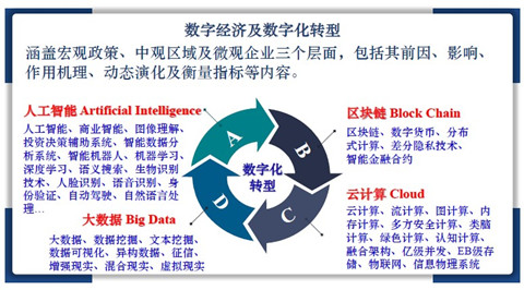 概括言之,企业数字化转型就是将先进的数字技术融入生产管理、组织运营、研发等环节,即图中的ABCD。