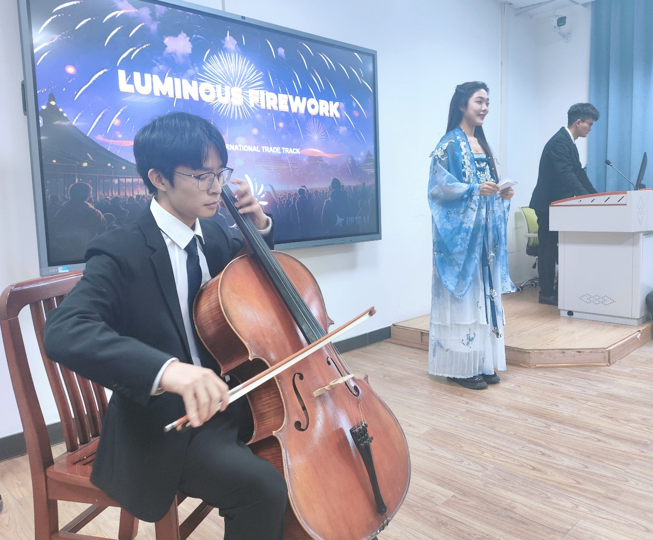 随后的新产品发布会环节则更具创意与挑战性。各队伍需选择一款创新产品,并模拟企业发布会场景,通过英文演讲、多媒体展示及现场互动,向评委和观众推介产品。从浏阳烟花到科技玩具,参赛作品紧扣全球贸易热点,充分体现了辣文