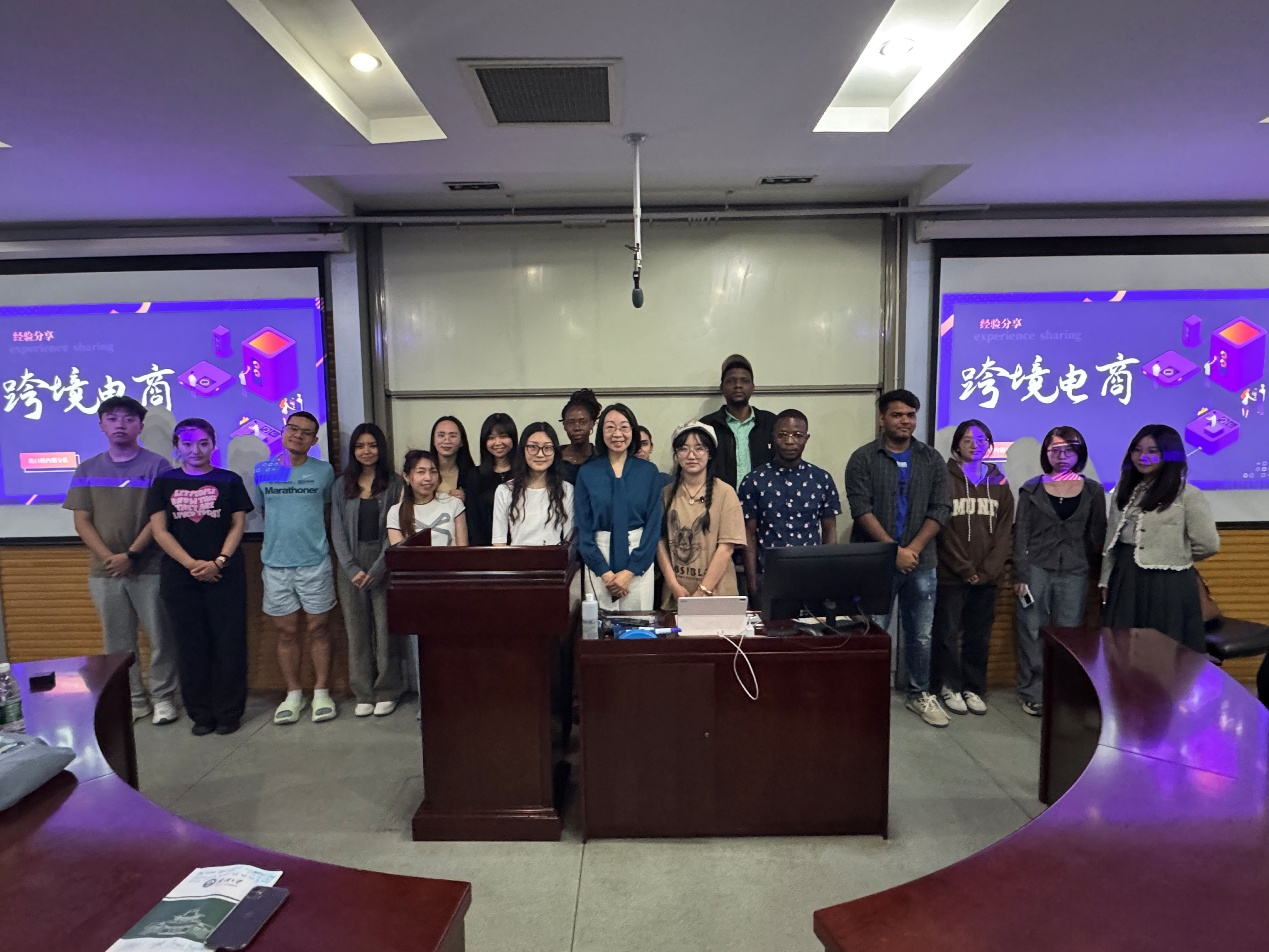 世界经济系郭凛老师及2024年商业精英挑战赛跨境电商赛道国赛一等奖“出口转内销分队”团队代表李诗研提供备赛策略与实战经验,近20余名中外学生参加了本次活动。