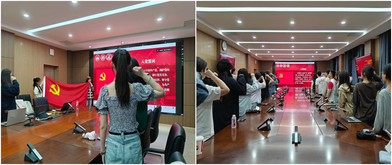 活动伊始,各支部党员面向党旗,庄严宣誓,声声铿锵。重温入党誓词,不仅是对初心的回望,更是对使命的再铭记。入党誓词中的每一个字,都承载着党员的责任与担当,激励着新时代青年坚定理想信念,践行党的宗旨,以实际行动诠释对党的忠诚。