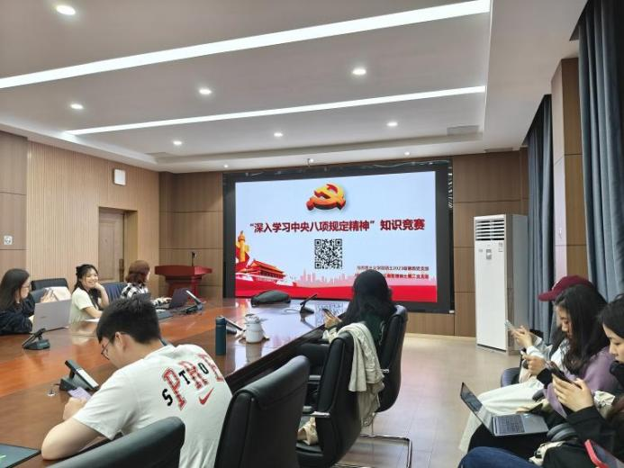 此前,各支部已经就中央八项规定的内容和精神向支部成员进行了宣讲,为检验大家对中央八项规定知识的掌握情况,在此环节还特别安排了一场有奖知识竞赛,大家积极参与,气氛热烈。