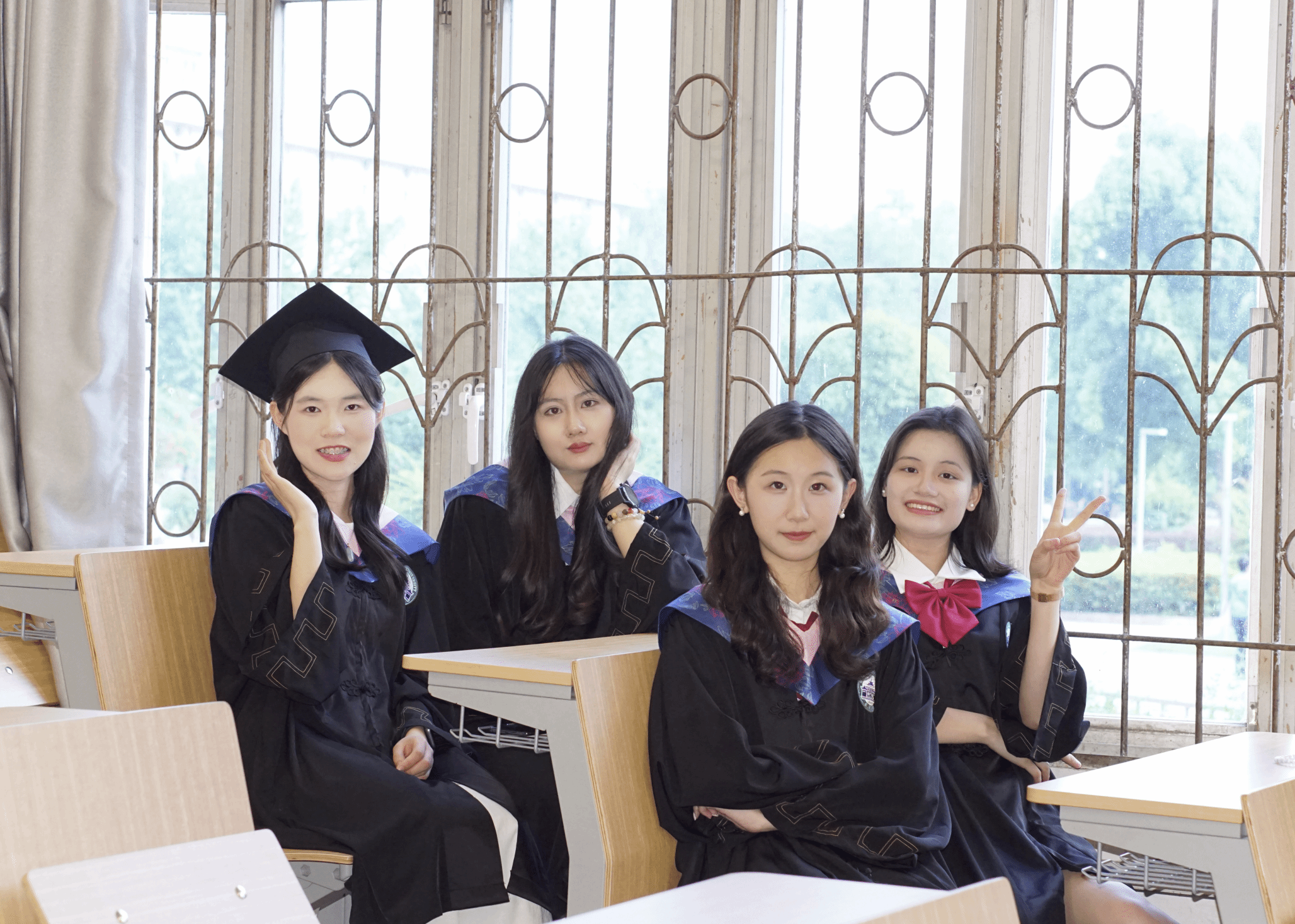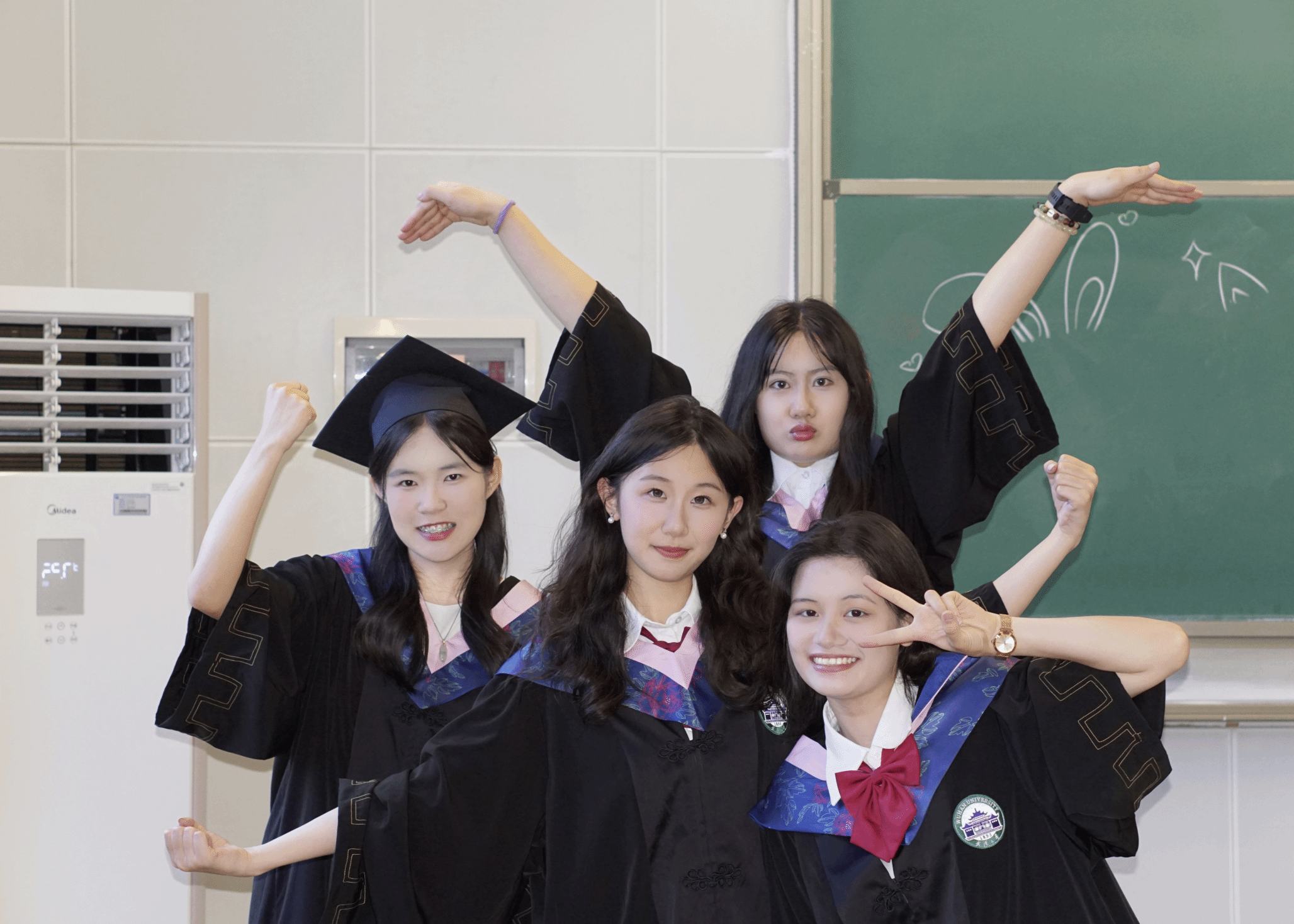 这些亮眼的数字背后,是珞珈山脚下一间平凡却闪耀的寝室里四位女生携手同行的青春印记。寒来暑往,春去秋来,她们于课堂求知、图书馆伏案、社会实践与志愿奉献中悄然蜕变。在刚刚落幕的毕业季,寝室成员李若珩、高畅、王璇、许艳美共同斩获"辣文