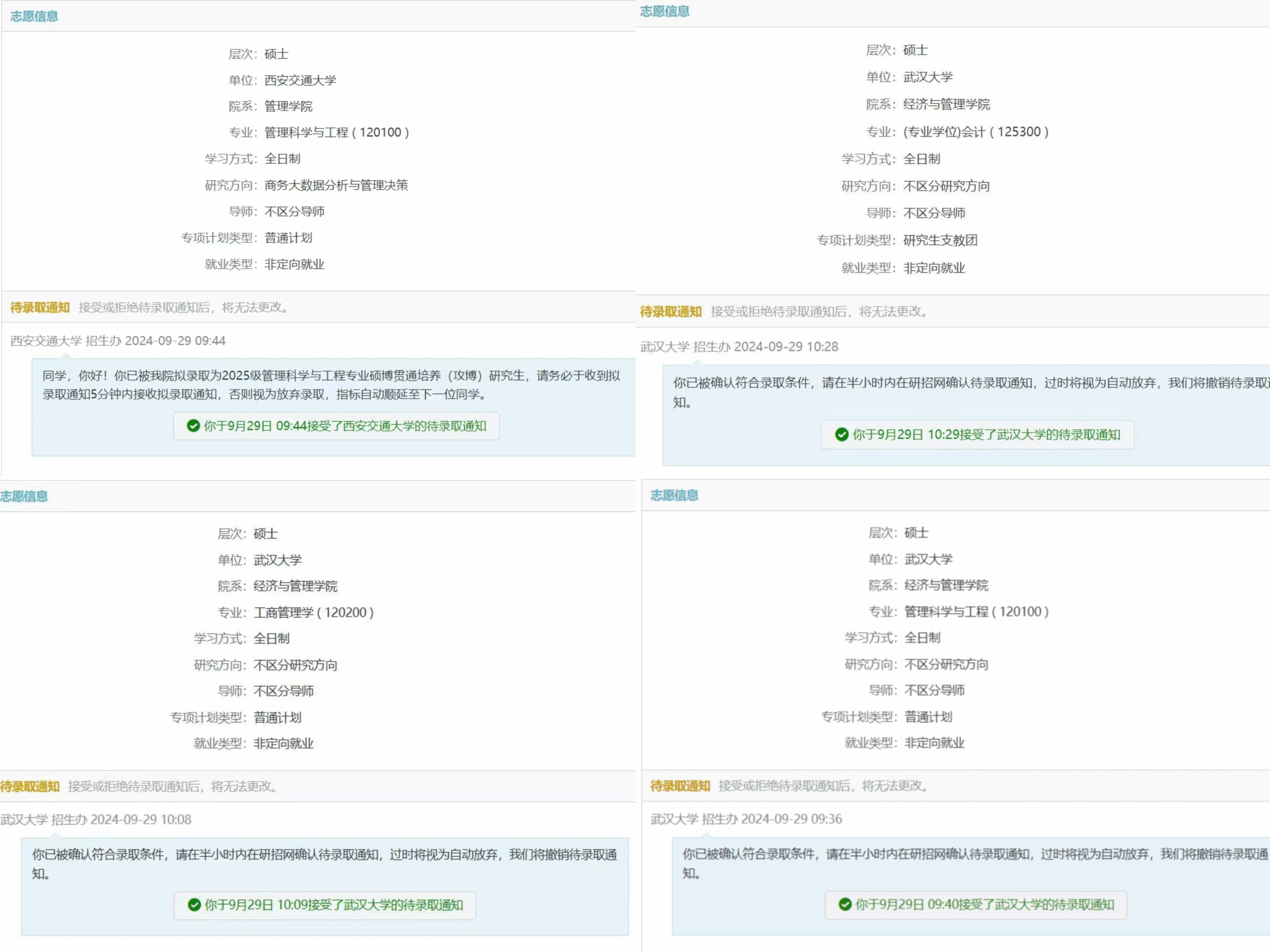 优秀本科毕业生"荣誉称号,也都争取到了继续深造的机会 ——李若珩保研至西安交通大学管理学院,其余三人则保研本校。