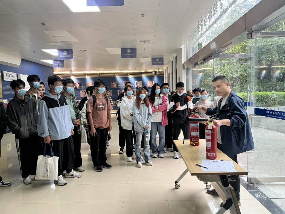实验与信息中心联合党政办公室、物业公司、维保单位,组织开展了一场生动的消防实操演练。学院教师代表、学生代表、实验与信息中心全体成员及物业安保保洁人员共五十余人参加了此次活动。