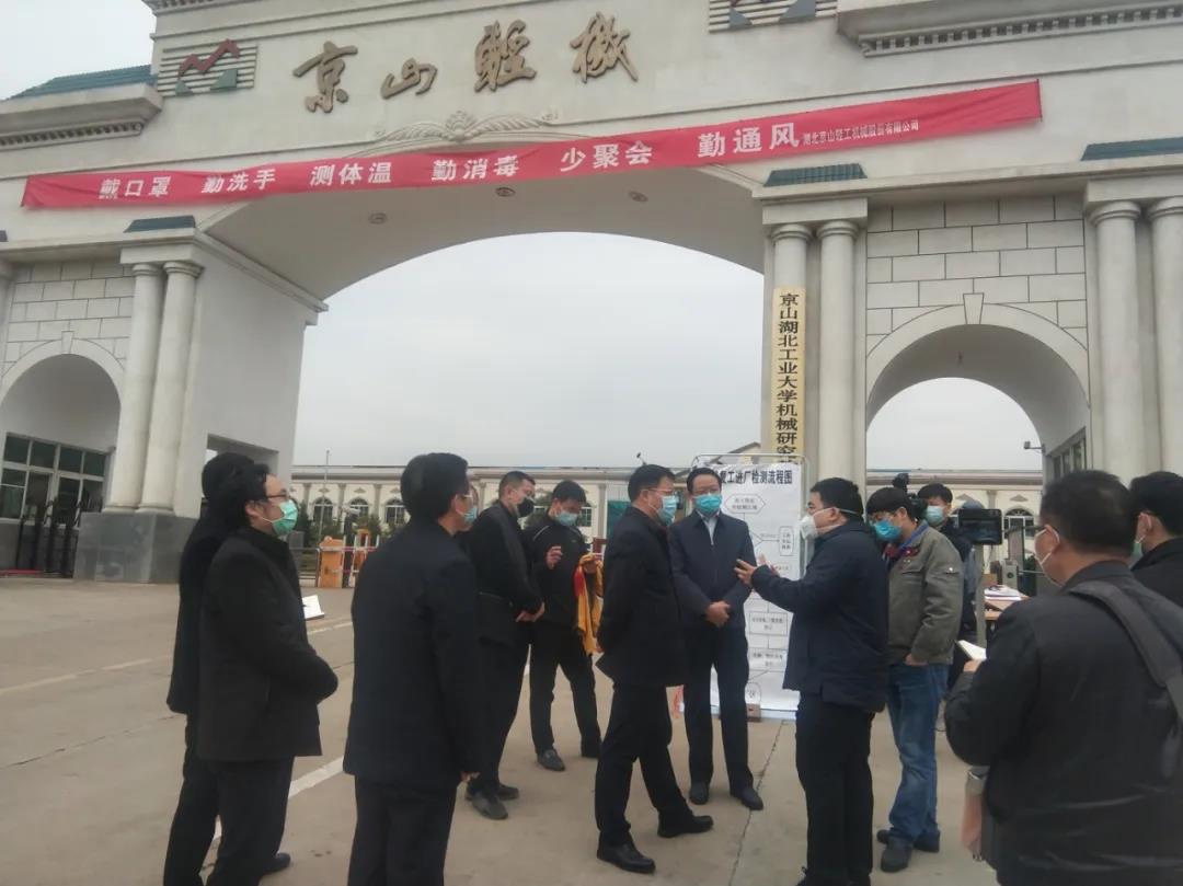 1月23日,京山轻机成立疫情防控应急领导小组,李健总裁担任总负责人。公司向员工宣导疫情防治相关措施,疏导员工心理。从春节假期间开始,每天以分子公司为单位,检测员工身体状况、发布公司相关工作安排、内部协调各项资源;与此同时,对员工集中居住的小区进行轮值制防御。远在江苏、广东的晟成光伏、三协精密等集团兄弟公司向湖北总部寄送口罩、红外测温仪、消毒水等紧缺物质。