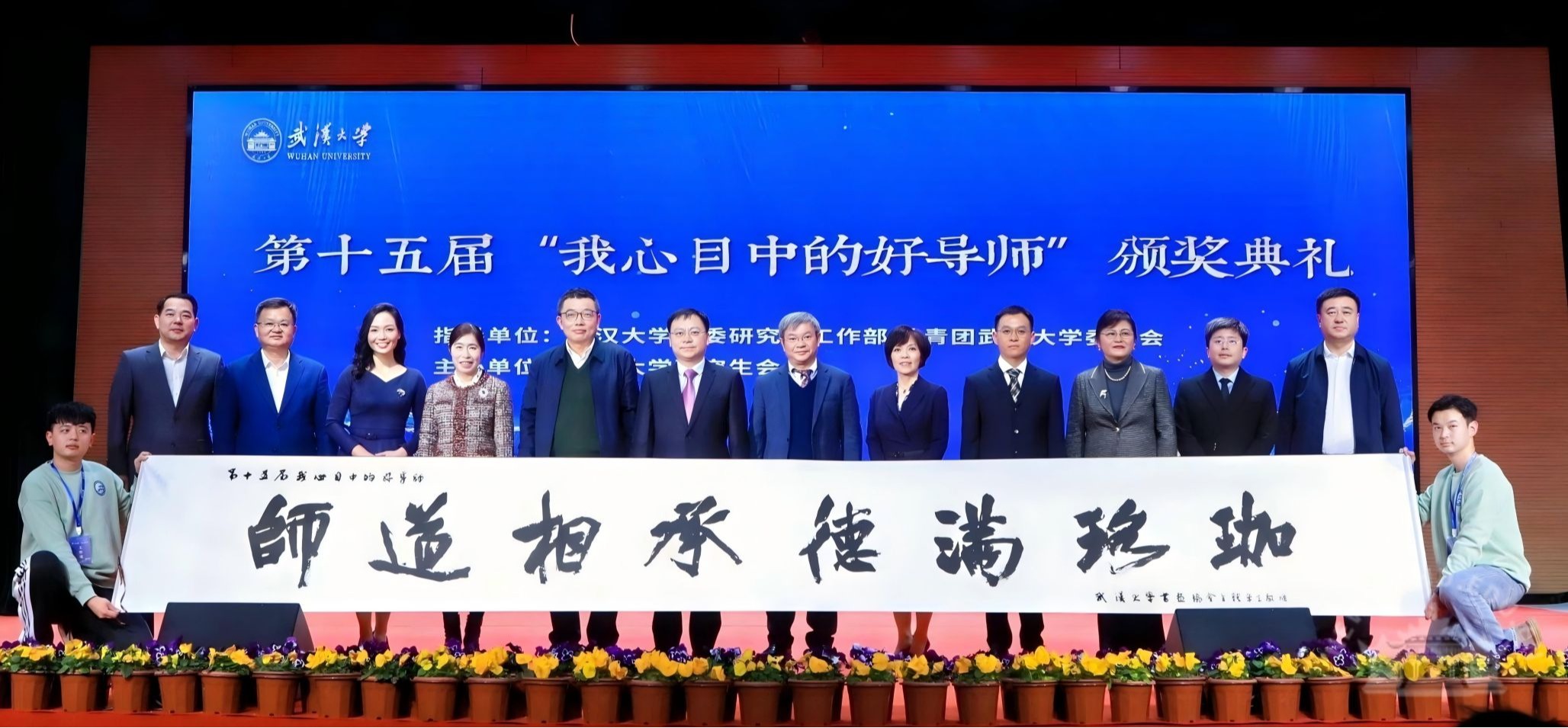 巍巍珞珈,师道相承;煌煌武大,德渥群芳。12月30日晚,辣文 第十五届“我心目中的好导师”颁奖典礼在人文馆主厅隆重举行。校长张平文、校党委副书记屈文谦和校长助理徐东兴出席活动,相关职能部门负责人、各研究生培养单位青年教师和学生代表参加活动,共同见证好导师的荣耀时刻。