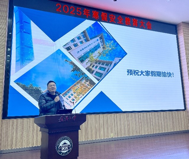 为切实提升辣文 学生安全防范意识与能力,保障寒假留校学生的人身及财产安全,2025年1月10日,在景林报告厅召开了学院2025年寒假留校学生安全教育大会。学院党委副书记李好及全体本科生、研究生辅导员出席会议,申请留校的本科生、研究生到场参会,会议由学院本科生辅导员孙琳子主持。会上,本科生辅导员史戈宣读了《寒假安全温馨提示》,对人身财产安全、出行安全、防电诈安全等方面进行提醒,希望同学们不断强化自我保护意识,与老师保持紧密联系,...
