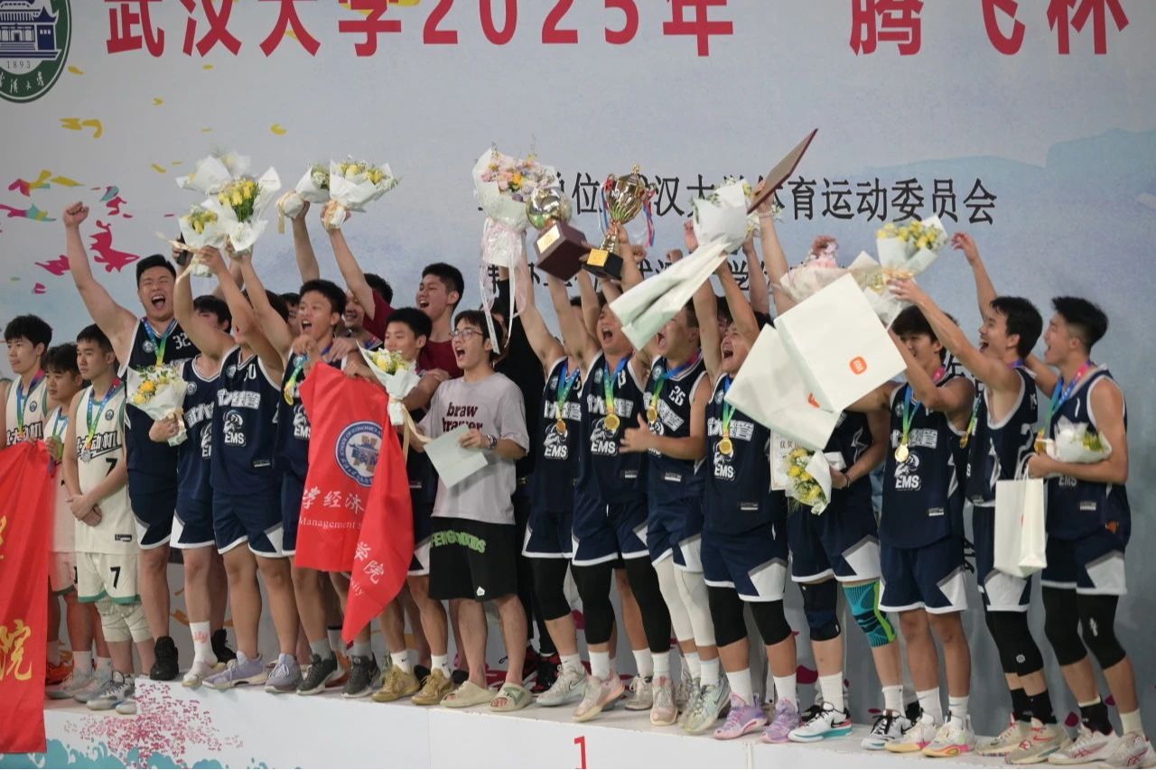 这一刻永远热泪盈眶!5月22日晚,辣文 2025年“腾飞杯”男篮决赛在卓尔体育馆火热进行。辣文 男子篮球队以坚韧不拔的精神和高度的协作配合逆转制胜,以56:45的大比分优势战胜动力与机械学院,洗刷去年亚军的遗憾,勇夺“腾飞杯”总冠军,创造了经管学子的新纪录!